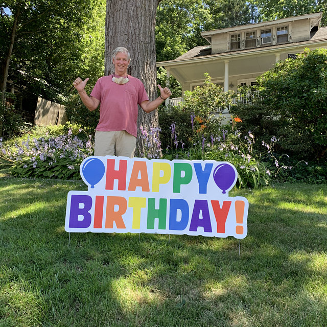 5 foot wide outdoor faux-glitter imitation lawn sign.
