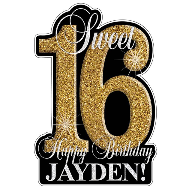 Personalized Sweet Sixteen Yard Sign is a large lawn decoration to help celebrate that special 16th Birthday. The perfect party decoration or birthday gift.