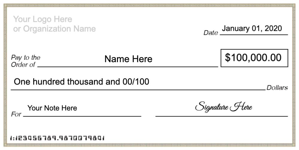 Big Check designs are available and can be used for any presentation. Create on-line now by modifying our profesional designs!