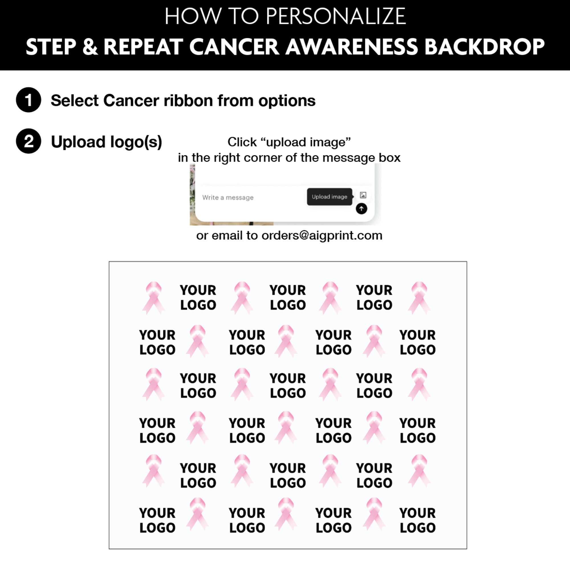 Use you non-profit organization logo next to the Ribbon of your choice to create a memorable fabric backdrop for any fundraiser event. Show your brand supporting the cause, and share your photos. Send us your logo and we can include it in our design.