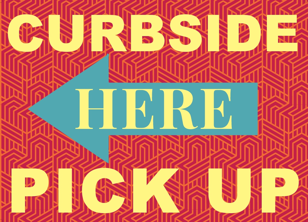 Curbside Pick Up Here Blue Left Arrow Red Yellow 14x10-Small