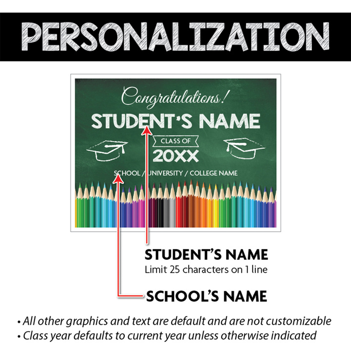 Graduation Yard Sign, Colored Pencil Personalized design, is a great lawn and party decoration to help celebrate that special person's achievement.